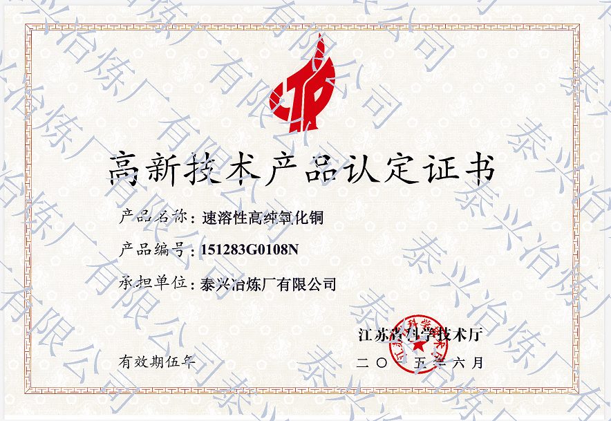 • 我國(guó)高端的氧化亞銅生產(chǎn)基地
